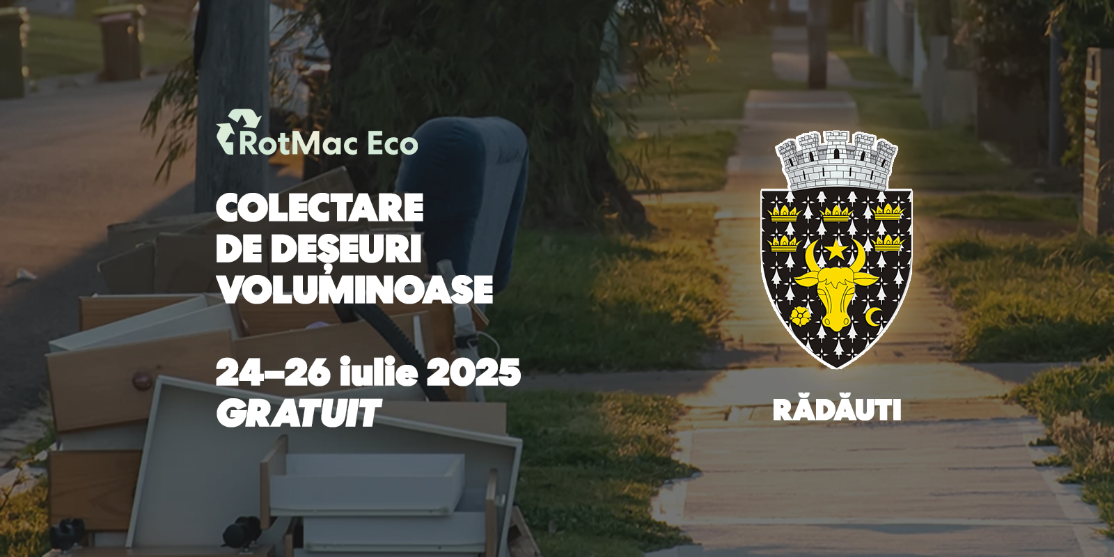 CAMPANIE GRATUITĂ DE COLECTARE DEȘEURI Rotmac Eco SRL informează cetățenii că, în perioada 24–26 iulie 2025, se va desfășura o campanie GRATUITĂ de colectare a următoarelor tipuri de deșeuri, direct de la gospodăriile